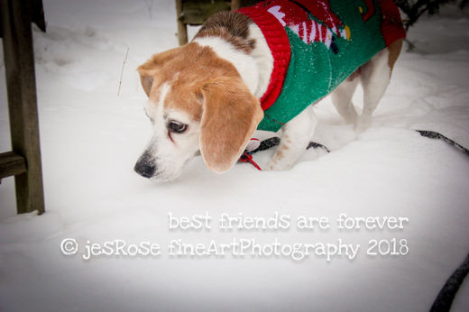 Our first steps outside on the first day of the new year were fun, messy, adventurous, wild & free, exciting, snowy, fast & fun... After spending the night cuddling with each other, like best friends do, Sid and I went out in the snow for some frolicking and sniffing new smells and planting new pawprints... We went out to the side of the backyard towards the field, (where the deer were just a few minutes ago!!) and oh we sunk into the snow, up to our doggy knees! And of course we stick our doggy nose right down deep into it to make sure there are no hidden surprises that we may miss! And oh! The snow is light enough that we can RUN in it and not get stuck! Oh the fun of running in the powdery snow...Oh! and some new bushes...are those briars I acquired on my pretty snow-sweater? Oh well...none the bother...Oh STEPS! Where will they lead? Oh I feel like Alice in the Wonderland...Where am I going I may never know but Jes is right behind to rescue if need be! Oh and more prancing and sniffing & prancing...I smell this year is going to be spectacular! Can't wait to tell Ma & Pa about it!!
